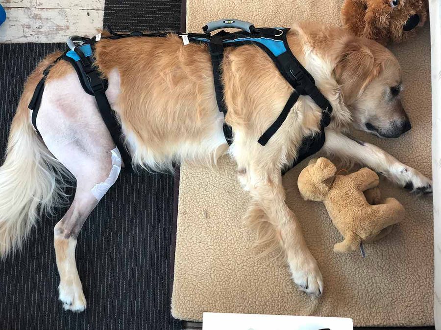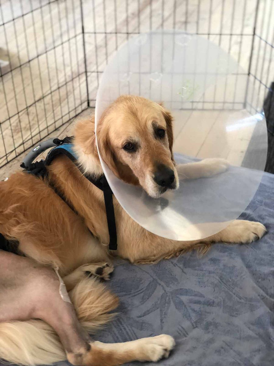 Over the years he’s had more than his share of injuries which comes with a highly active dog. Joint issues, pulled muscles, strained back, knee replacement. That one was not fun – a big surgery and 3 month of keeping him quiet. Quite a challenge for Dozer!