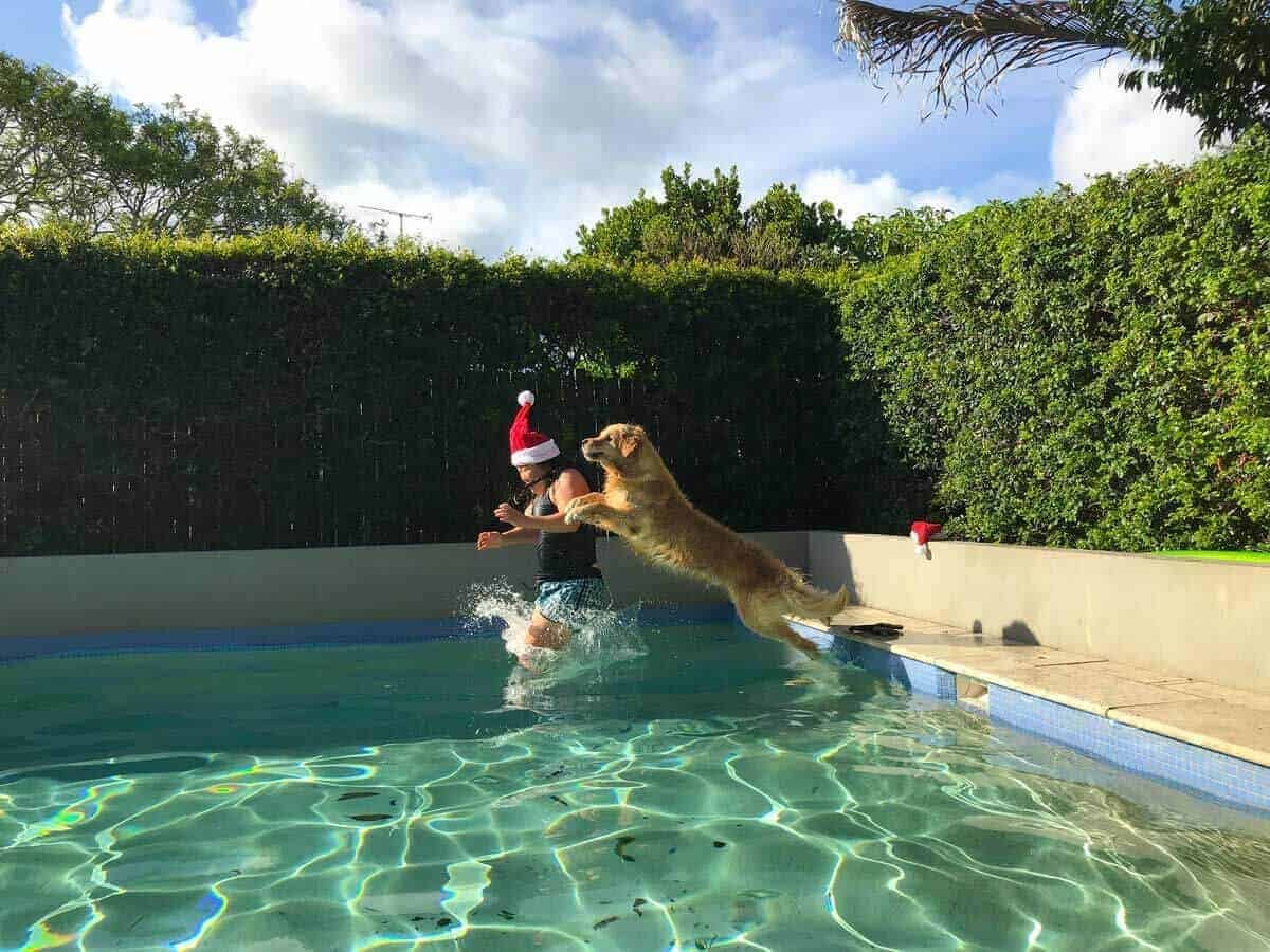 ….then spying the roast Chook I popped on the edge of the pool by the iPhone in an attempt to bribe him into co-operating….