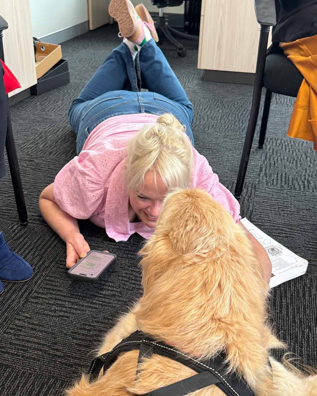 If you are picturing a quiet, calm office, everybody at their desks working earnestly – then huff, huff, huff in comes Dozer with his unmistakable excited panting sound, leaving a trail of golden fur on the grey office carpet and on the clothing of everyone who dared to wear black on that day – you’re just scratching the surface of the reality that is Dozer in an office.