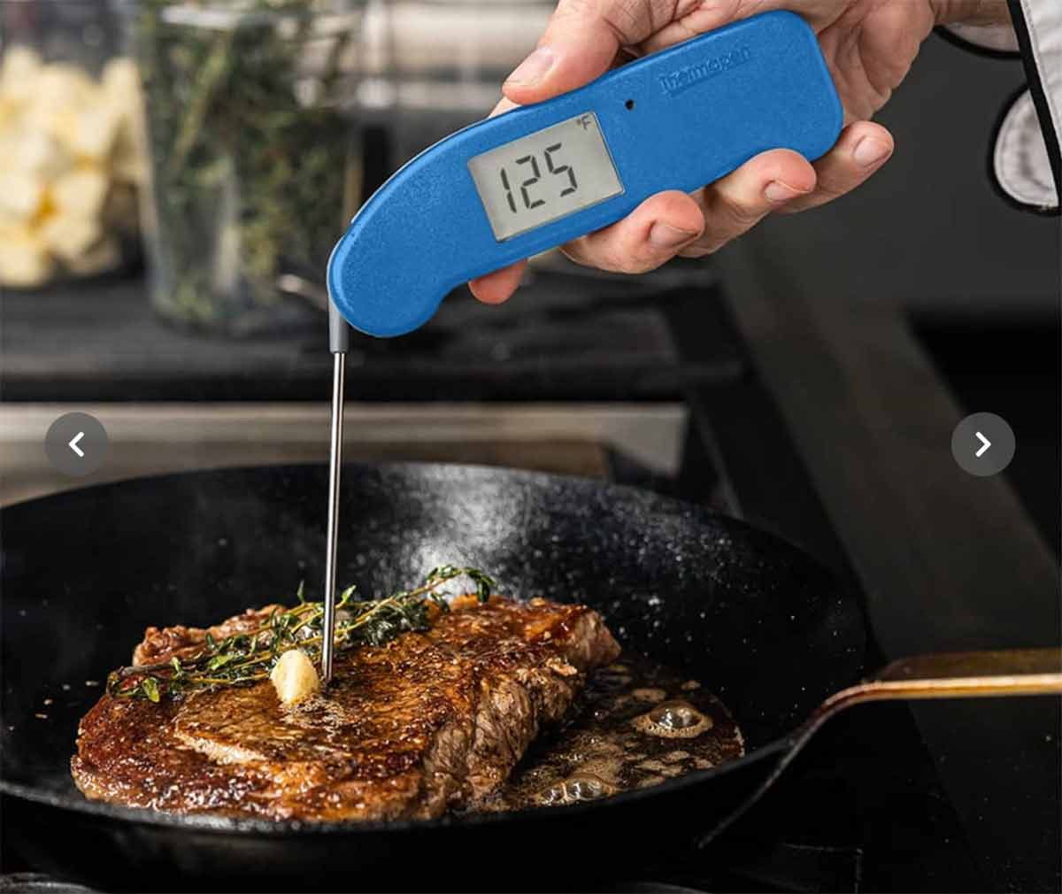 A thermometer guarantees you hit perfect doneness, every single time. Thermapen markets itself as the best, most reliable and fastest – and having owned one for a number of years now, I can’t argue. I use it almost every day – for roasts, pan-searing steaks, fish, chicken breast, even breads (for recipe testing), checking oil temperature, and candy.