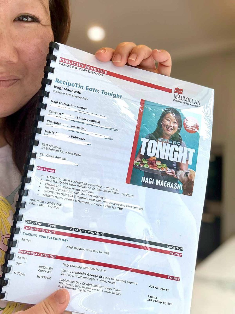 On the day of launch, Candice, the publicist at my book publisher Pan Macmillan, handed me an impressive (terrifying?) bound document that detailed every move for the next 5 weeks. Every event, arrival times, where to go, who to call, contact details, flights, hotels, interviews, photo shoots, dinners, lunches…..