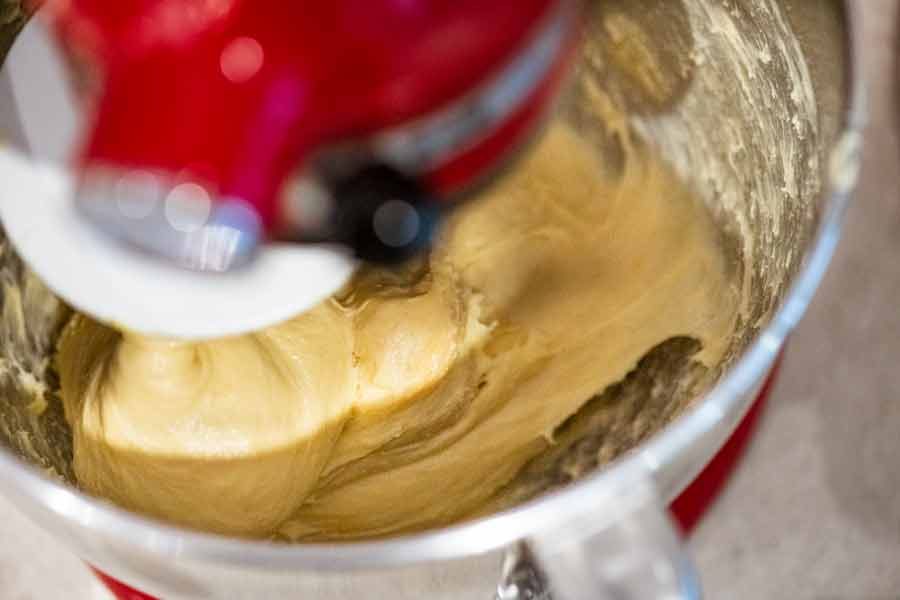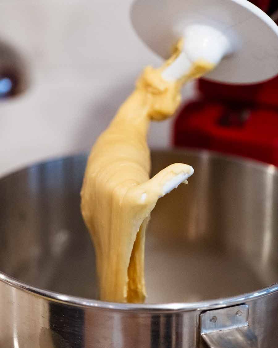 - Incorporate butter: Keep mixing until the butter is fully incorporated- about 1 minute. Dough will be pasty and sticky!