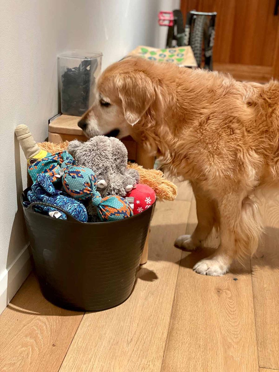 Freshly laundered bucket of Dozer toys. Let’s see how full that bucket is by the end of tomorrow.