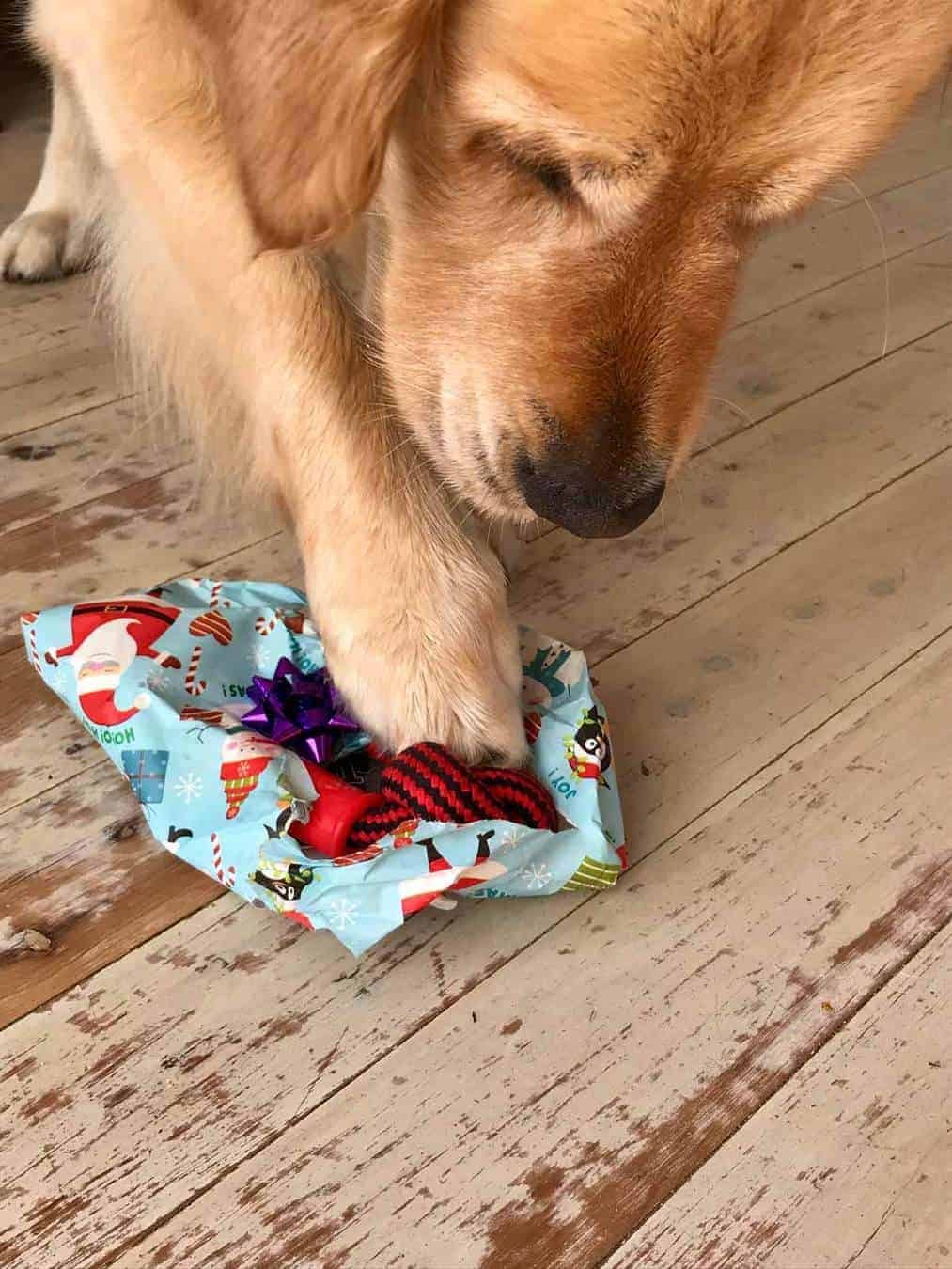 Tearing into a Christmas present to reveal his new (current) favourite toy.