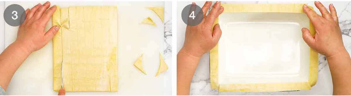 - Standard grocery store puff pastry in Australia comes in 20cm/8″ squares so we need to connect 2 pieces so it’s large enough to cover the baking dish. If you get a premium brand like Careme which is larger sheets, you won’t need to do this.