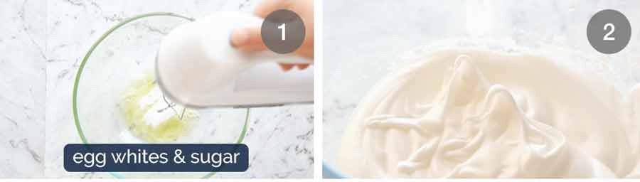 Beat egg whites and sugar until foamy.