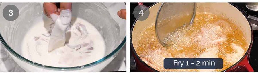 Batter up – Put all the squid into the batter. We will fry them in 3 batches and the remaining squid can stay in the batter while you fry.