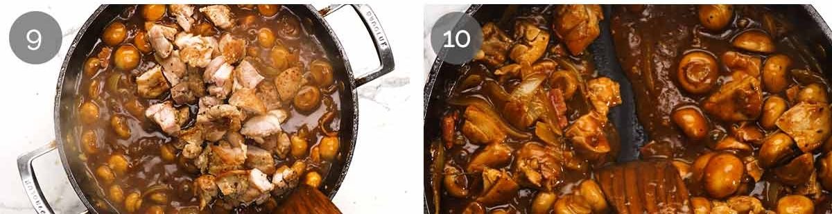 Beef stock – The other liquid for the sauce. Beef rather than chicken stock (the usual choice when cooking with chicken), for a darker brown sauce with deeper flavour.