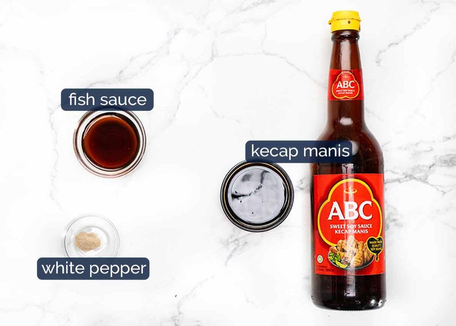 Kecap manis (aka Ketjap Manis) – Indonesian sweet soy sauce with caramely flavour and a syrupy consistency. The flavour is so much more interesting than just using regular soy sauce plus sugar!