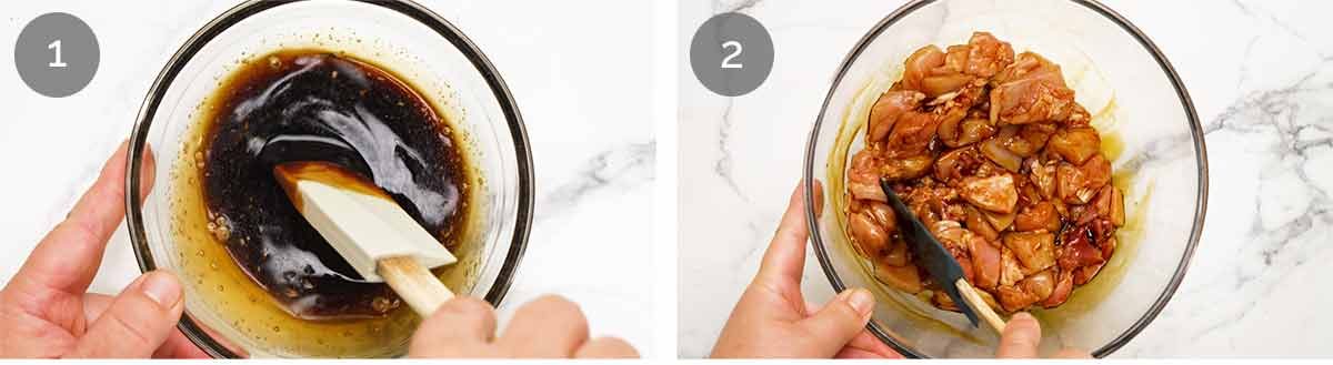 Flavour chicken – Toss the chicken in 1 1/2 tablespoons of the sauce. This is just to season it lightly. No need to marinate.