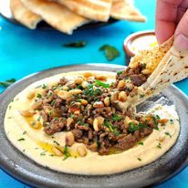 Hummus with Lamb (Hummus B’lahmeh) is one of my favourite Middle Eastern starters. The combination of creamy hummus with the fragrant lamb and the crunch of pine nuts scooped up with fresh pita bread will change your view forever about the humble hummus.