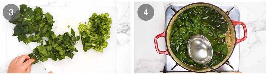 Ladle the vegetables and broth into bowls.