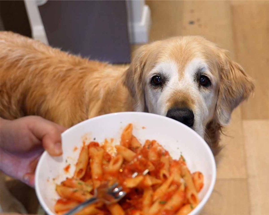 Nowhere to be seen when I’m sautéing the chilli (the fumes tickle his nose) but he waddles over when it’s done. But – no spicy pasta for Dozer! Can you imagine the mess I’d have to deal with. 😂