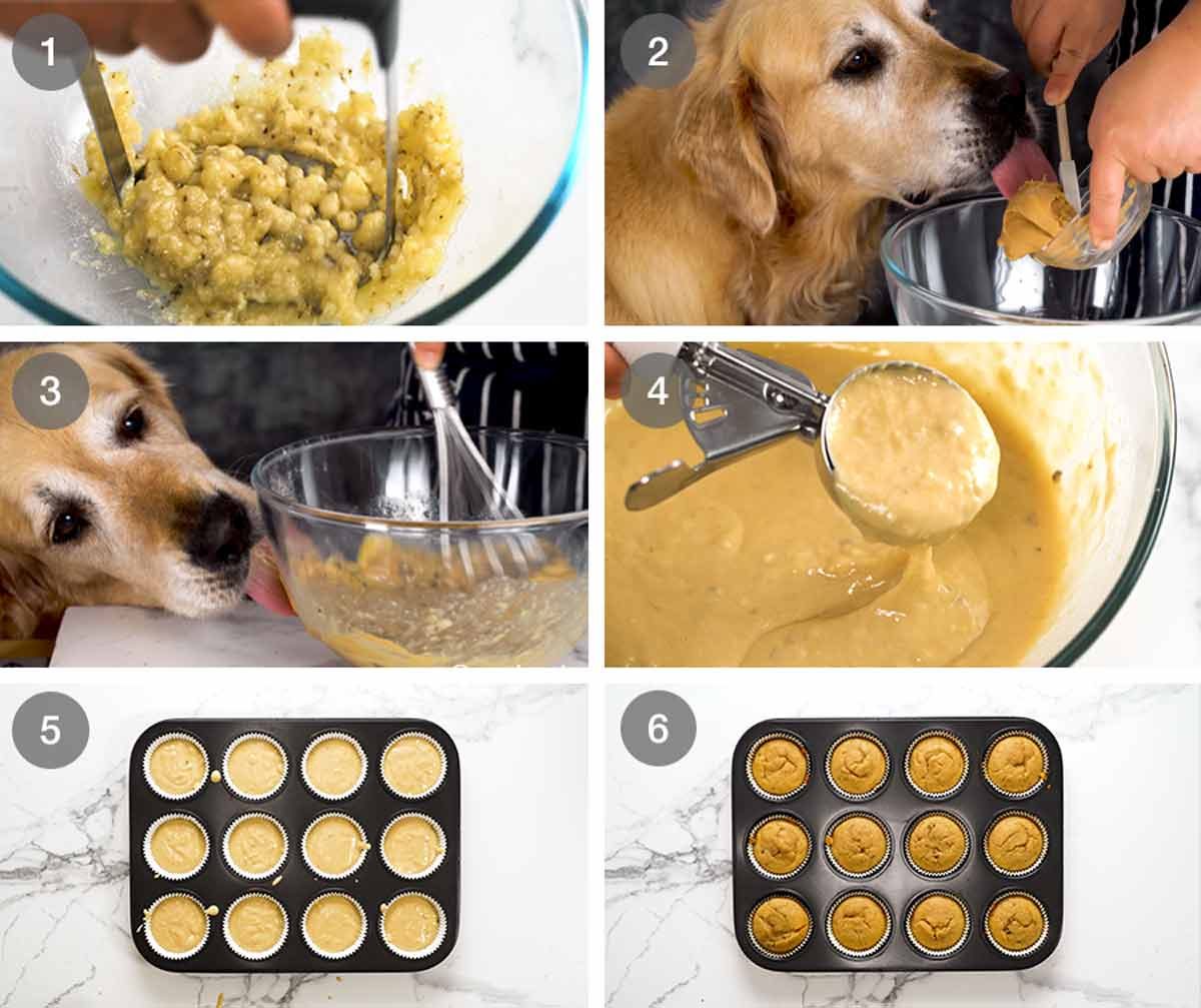 Here’s what goes in these cupcakes – these are all dog friendly ingredients. It won’t upset your dogs’ stomache and you won’t have a mess to clean up on your lawn tomorrow (sorry to gross you out 😂).