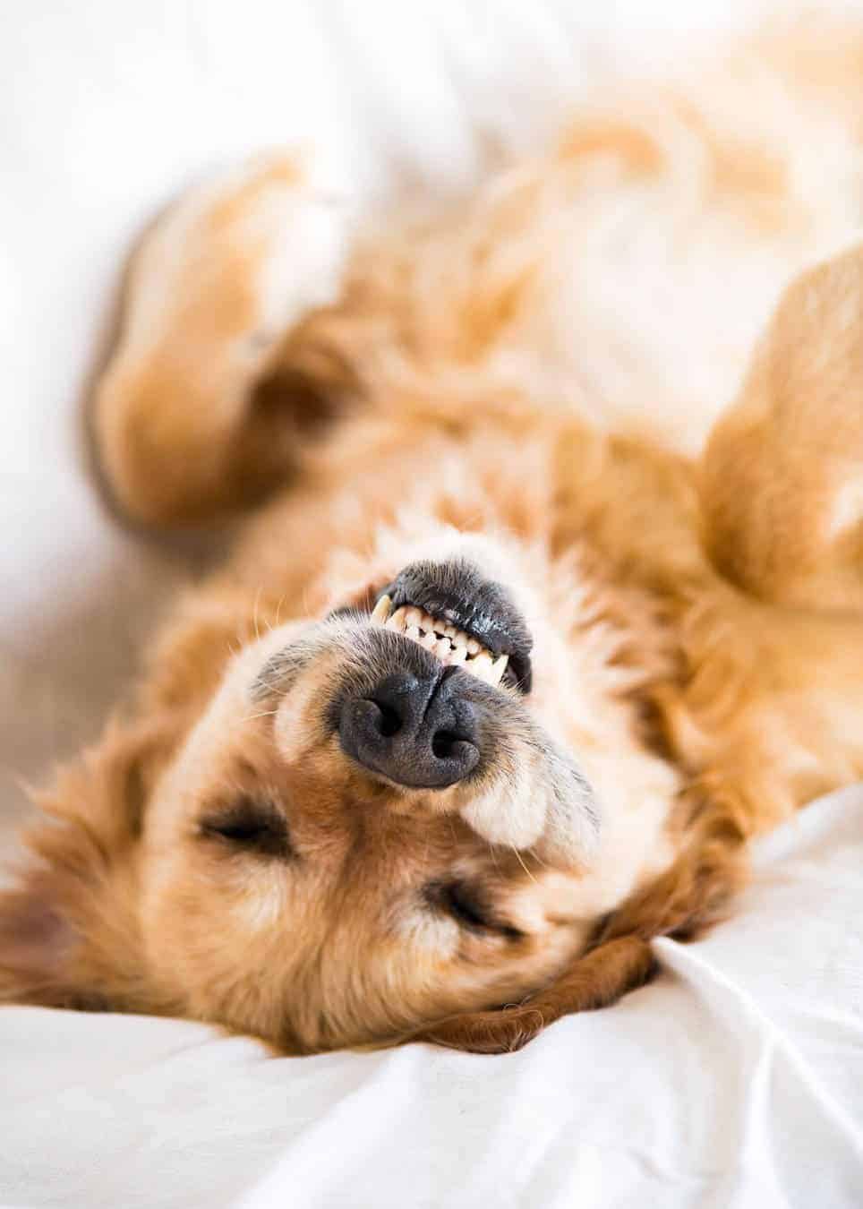 Flashing his pearly whites…. (i.e. sprawled on his back so his flappy jowls are revealing his sharky teeth!)