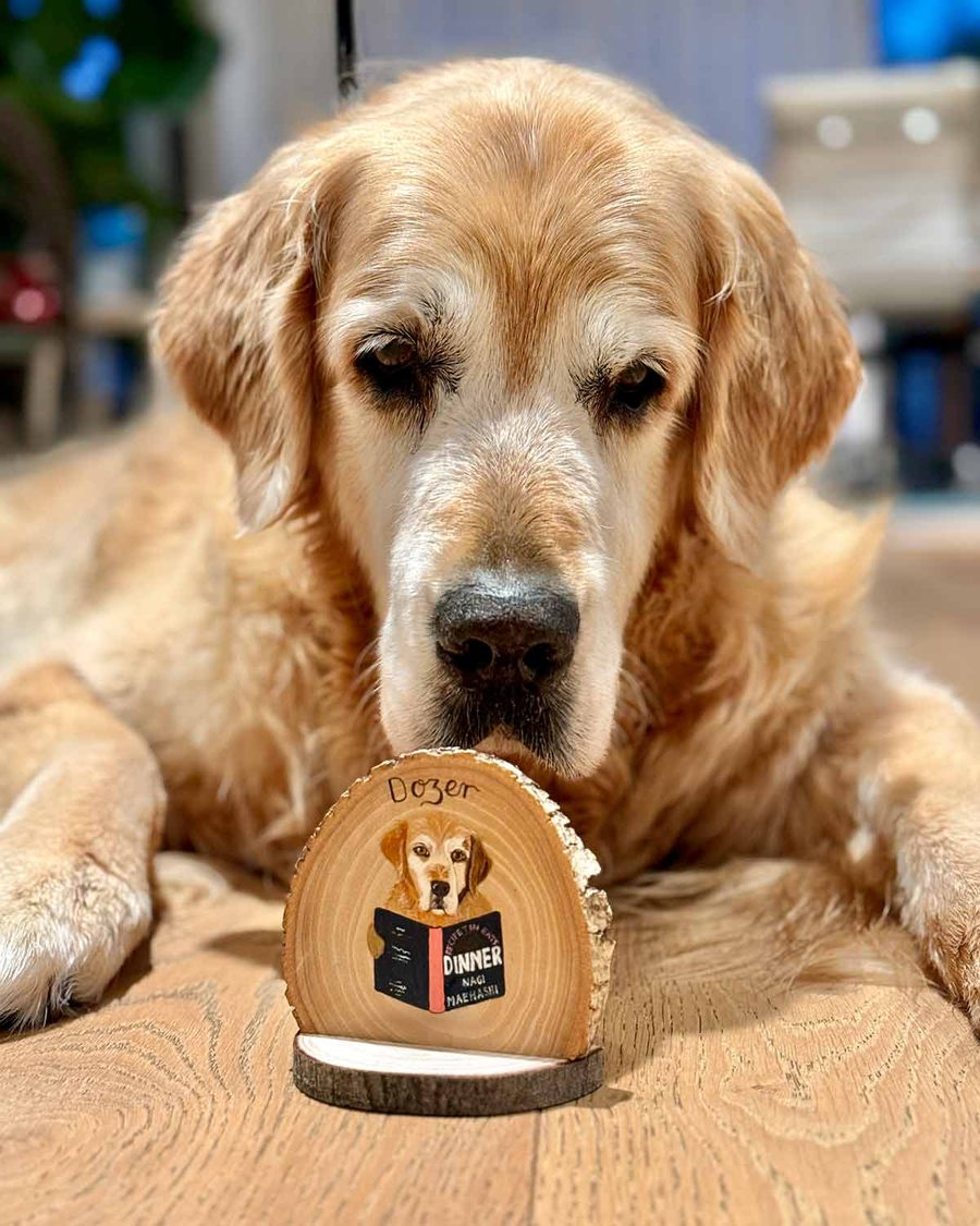 Since Dozer and I started meeting readers in “real life”, he’s been blessed with adorable gifts from generous people. Here is a memorable one. It’s handmade. So touched a reader took the time to make this!! I just love it. 😇