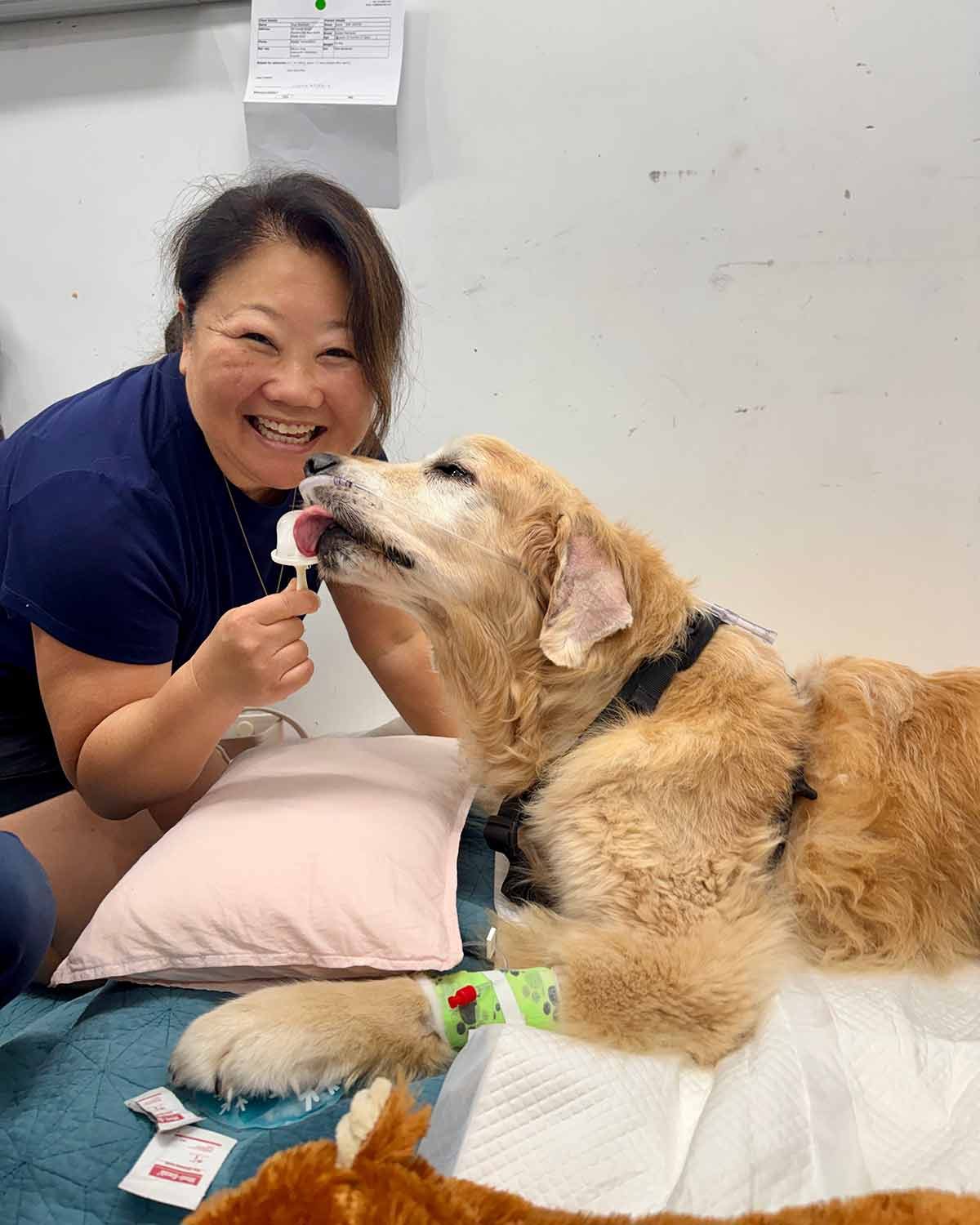 In honour of the joy Dozer has brought to this website over the years, I can’t finish this post without bringing some cheer to the Life of Dozer section. 🙂 Here he is eating an ice pop – literally just plain ice. It’s his absolute favourite treat these days! Funny how much the bar drops when you’re in hospital, gourmet expectations reduced to frozen tap water and he’s living his best life. ❤️