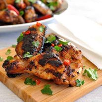 Nagi, I love this marinade! However, I do grill the chicken a little differently. I set the grill up for 2-zone cooking with the grill at maximum heat on one side and no heat on the other side. I place the chicken on the indirect heat side of the grill, turning from time to time, basting and checking the temperature with an instant read thermometer. Once the chicken reaches an internal temperature of 160°F. baste the chicken one last time with the marinade and move the chicken over to the direct heat, then sear both sides. This method is fail-safe. The chicken is fully cooked, very juicy from all the basting, and perfectly seared. It won’t burn that perfect marinade.